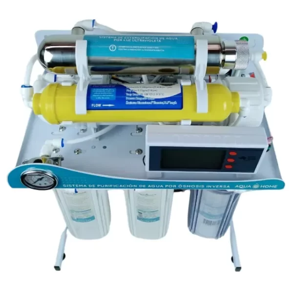• 7° Etapa (UV): Reducción bacteriológica de microorganismos vivos que no son atrapados por la membrana de ósmosis (como por ejemplo bacteria ''escherichia coli'').