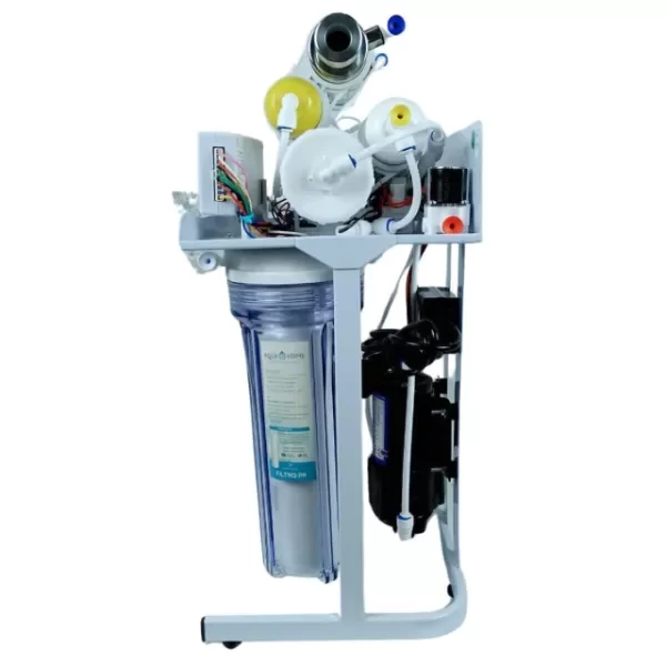 • Capacidad de procesamiento: 400 litros por día en promedio (tenga en cuenta que la membrana de ósmosis inversa tiene un rechazo entre un 40 y 60% del agua. Esto puede variar según la calidad del agua de su zona y del uso que se le dé al equipo)